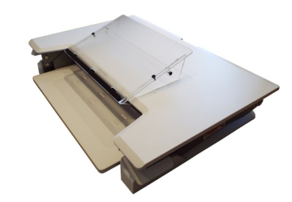 This document holder can be used with the Ergotron Workfit T sit-stand workstation. The slope raises the height of paperwork and offers varied viewing angles which means your posture remains in a healthy position without the need to strain to read paperwork. It also places documents in-line with the computer screen which removes the need to constantly twist the head when referencing.